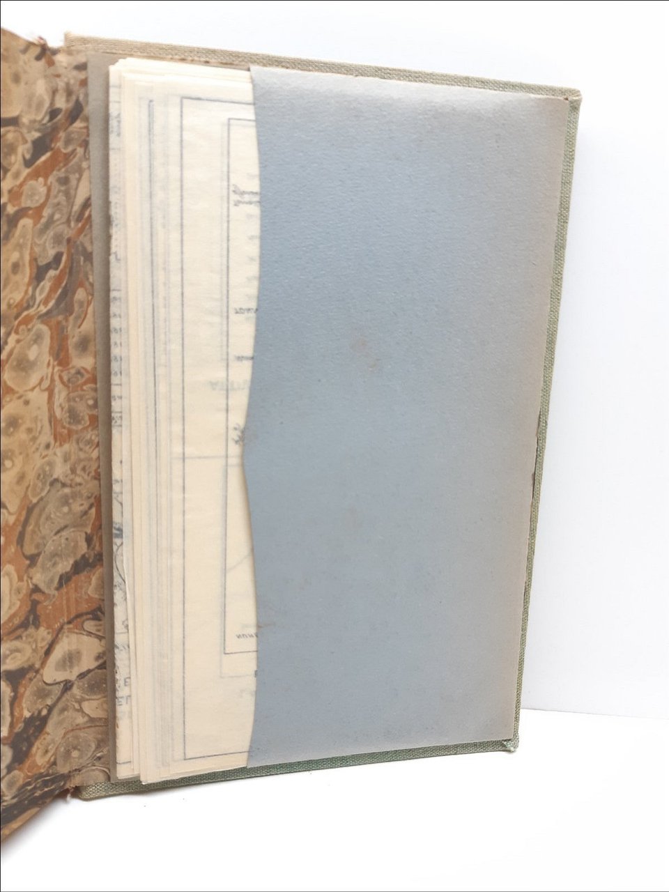 manca la sovraccoperta, legatura rigida in tela verde scolorita al dorso, in condizioni accettabili con alcune macchie ai piatti, tagli irregolari bruniti impolverati quelli superiori, fogli di guardia marmorizzati, firma di possesso alla prima pagina bianca, dorso leggermente scollato dal libro, una macchia alla cerniera all'antiporta, interno in buono stato, lieve brunitura al margine esterno delle pagine, in alcuni punti cerniere a vista, all'ultima pagina planimetrie pi˘ volte ripiegate numero pagine 422 + allegato dimensioni cm 20,5 * 15