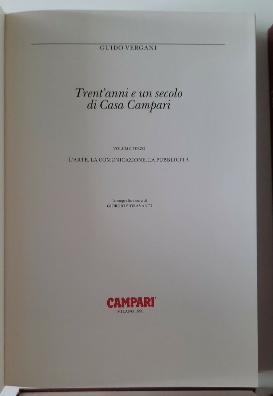 GUIDO VERGANI TRENT'ANNI E UN SECOLO DI CASA CAMPARI CAMPARI 1990 3 VOLUMI