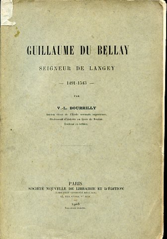 In-8°, pp. XVI, 449, brossura editoriale azzurrina (un restauro alla cuffia superiore). Ritratto del Du Bellay all'antiporta e varie tavv. f.t., tra cui un facsimile di autografo su doppio foglio. Ottima copia in barbe e a fogli chiusi. Edizione originale di questa pregevole monografia storica, rielaborazione della tesi di laurea del Bourrilly. Comprensivo di bibliografia, appendice ed indici, il volume ricosctruisce la vita e l'opera del grande diplomatico e storico francese del Rinascimento che fu anche governatore di Torino e Viceré del Piemonte. Cabeen, Critical Bibliography of French Literature, II, 2211.