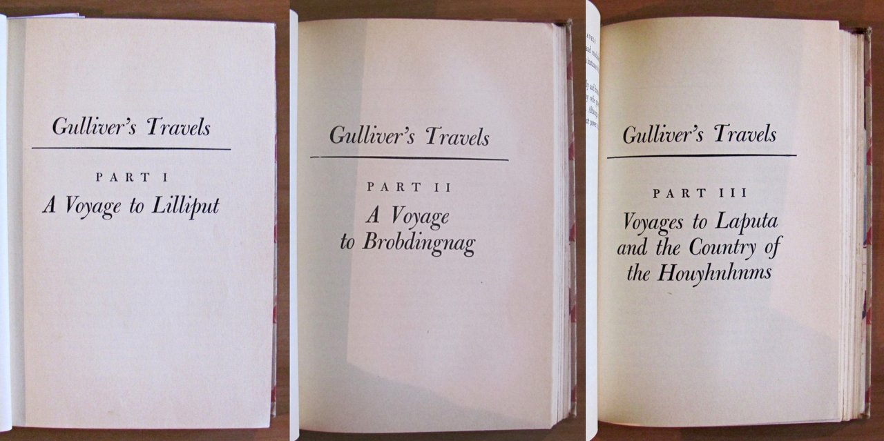 A voyage to Lilliput, A voyage to Brobdingnag, Voyages to Laputa and the Country of the Houyhnhnms. Collana Illustrated Junior Library. Moltissime illustrazioni in b/n n.t., e 8 tavole a colori f.t. di Aldren Watson. Ed. Grosset and Dunlap - New York, 1947. Cartonato editoriale con firma di vecchia appartenenza all'occhietto. Privo di sovraccoperta. 14x21; pp.306. Stato di Nuovo. , Ottimo (Fine)