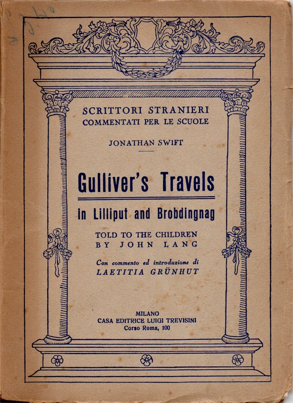 Gulliver's Travels in Lilliput and Brobdingnag. Told to the children by John Lang. Con commento ed introduzione di Laetitia Grünhut