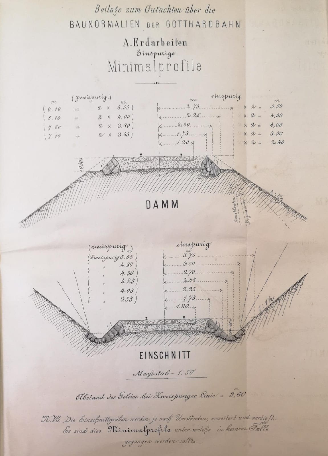 GUTACHTEN UBER DAS BAUPROJEKT DER GOTTHARDBAHN BETREFFEND BAUNORMALIEN UND TRACIRUNGSGRUNDSATZE. - Bern, im August 1876.