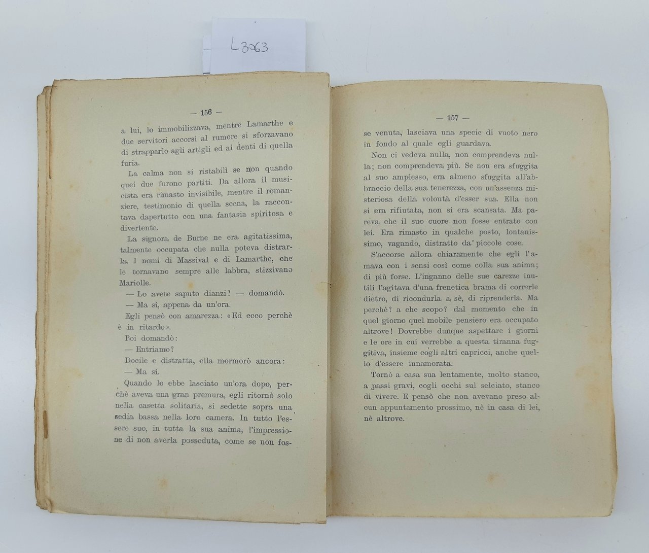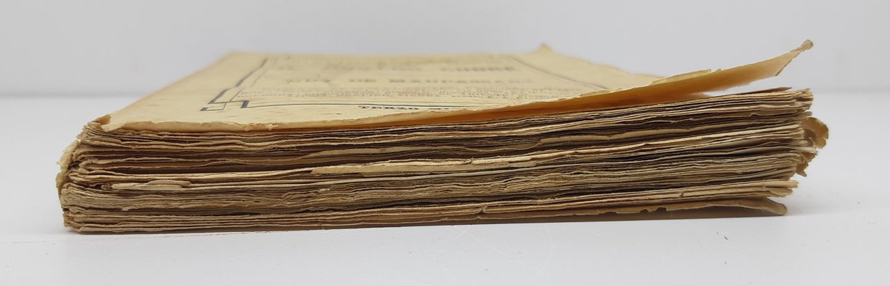 Legatura morbida editoriale con fioriture e aloni diffusi ai piatti e al dorso, piccoli strappi abrasioni ai margini, uno strappo di centimetri 3 al margine inferiore e al margine superiore tra piatto anteriore e dorso, dorso con strappi riparati, tagli irregolari bruniti e con fioriture, firma di possesso al piatto anteriore antiporta e frontespizio, timbro di catalogazione antiporta e timbro di possesso al frontespizio, fioriture diffuse alle pagine interne che non impediscono la lettura, legatura molto allentata, da pagina 149 a pagina 156 a fogli sciolti, numero pagine 282 più pubblicità dimensioni cm 19,5 x 13,5