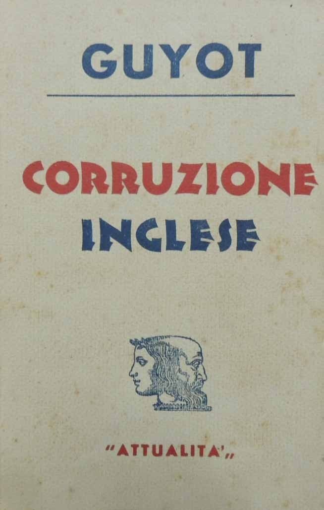 Yves Guyot, Corruzione inglese, Casa Editrice Attualità, Milano 1941, pp. 232, cm 20, br. ed. Titolo originale: La traite des vergines a Londres. Leggere tracce d’uso, fioriture, carta lievemente brunita, ma nel complesso buona copia.