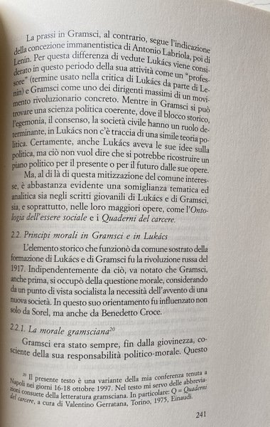 Soggetti: Filosofia, Esistenzialismo, Positivismo, Marxismo, Saggistica, Critica, Novecento, Pensiero filosofico, Opere generali, 1885-1971, Ricerca sociologica, Estetica, Ungheria, Protomarxismo, Anni Venti, Bucharin, Merleau-Ponty, Simone de Beauvoir, Sartre, Conversazioni, Ontologia, Umanesimo esistenzialista, Realismo, Espressionismo, Avanguardie letterarie, Distruzione della ragione, Teorie, Heidegger, Antropologia, Stalinismo, Dogmatismo, Scuola di Budapest, Ideologie, Morale, Antonio Gramsci, Testamento politico, Totalitarismo, Democrazia, Bibliografia, filozófus, Politikai filozófiája, Lukács és a modernitás. Lukács az európai gondolkodás történetében, Philosophy, Existentialism, Positivism, Marxism, Essays, Criticism, Twentieth Century, Philosophical Thinking, General Works, Sociological Research, Aesthetics, Hungary, Protomarxism, Twenties, Conversations, Ontology, existentialist Humanism, Realism, Expressionism, Literary Avant-gardes, Destruction of Reason, Theories, Anthropology, Stalinism, Dogmatism, Budapest School, Ideologies, Morals, Political Testament, Totalitarianism, Democracy, Bibliography, Libri Vintage Fuori catalogo, Avanguardie, Russia, unione Sovietica, Bolscevismo, Bucharin, Anni Venti, Estetica, Dogmatismo, Ideologie politiche, Scritti giovanili, Democrazia, Concezione dell'uomo, Scuola di Budapest, Rosa Luxemburg, Imre Nagy, Rakosi, Kadar, Romania, Rudas, Partito comunista, Bela Fogarasi, Fascismo, Thomas Mann, Kafka, Musil, Joyce, Weimar, Stalin, Out of print books, Avant-gardes, Bolshevism, Twenties, Aesthetics, Dogmatism, Political ideologies, Youth writings, Democracy, Man's conception, Communist Party, Fascism