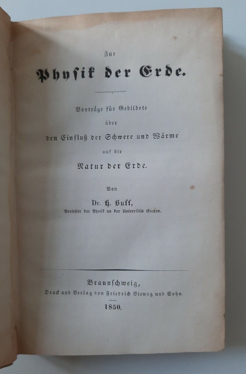 H. BUFF ZUR PHISIK DER ERDE F. VIEWEG 1850
