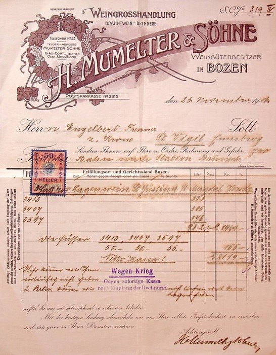- [Fattura - Enoteca - Rivendita Di Vini - Bolzano].