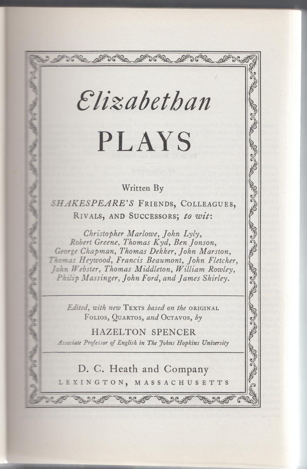 H. Spencer- Elizabethan Plays -Lexington Massachusetts 1933-L3666