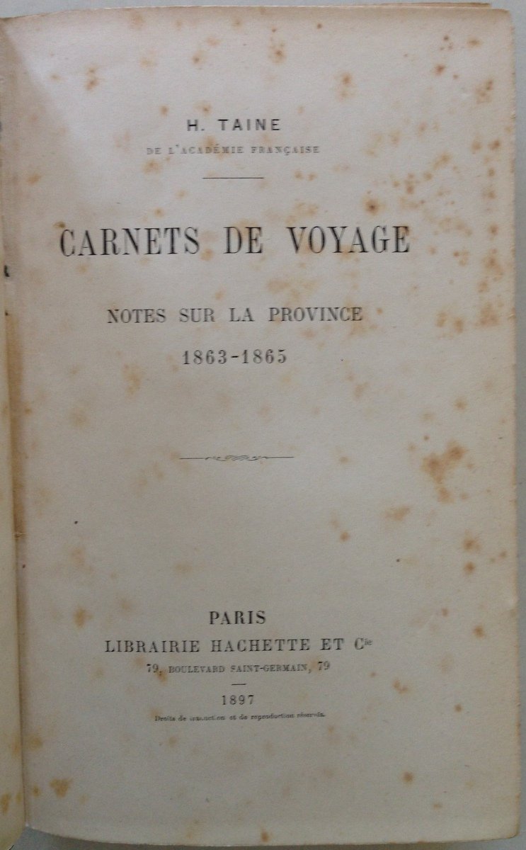 H. Taine Carnets De Voyage Notes Sur Le Province 1863 1865 Hachette Paris 1897