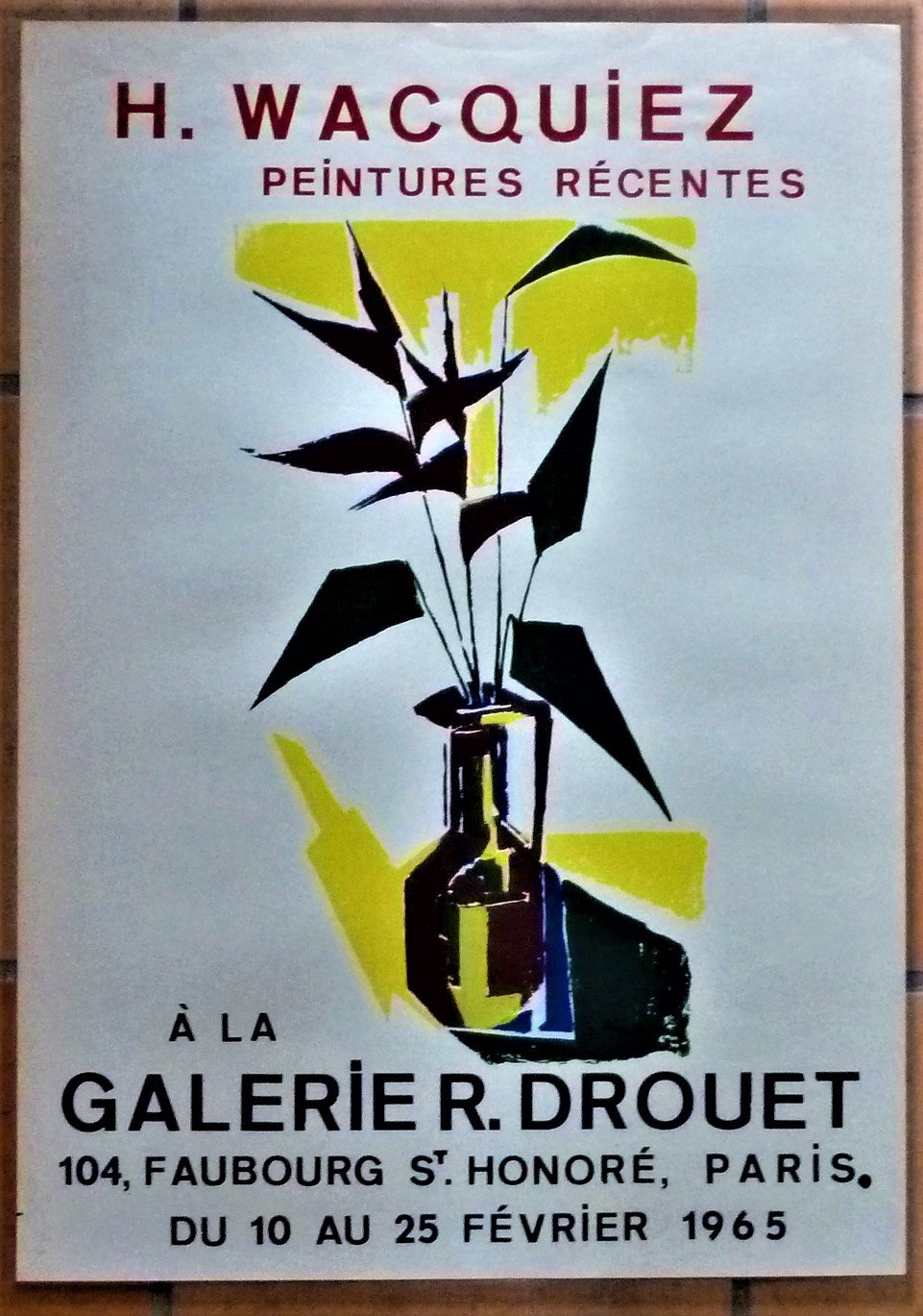 H. Wacquier." Peintures Récentes". Affiche éditée à l'occasion de l'exposition à la Galerie R. Drouet du 10 au 25 février 1965.