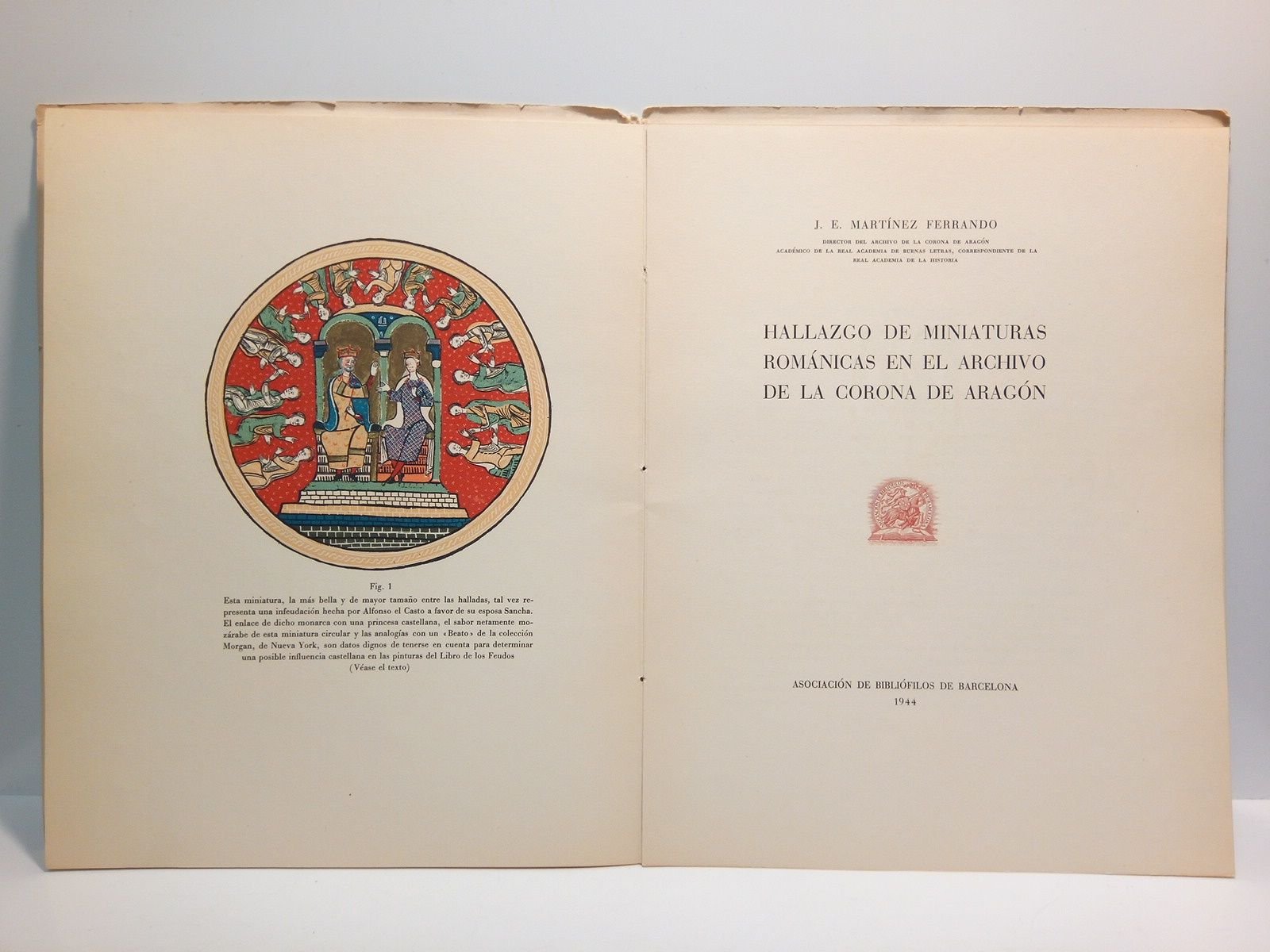 [EDICION LIMITADA].- Barcelona: Asociación de Bibliófilos de Barcelona (Imp. en el obrador de la Casa Miquel Rius, S. A.), 1944.- 15 p., [2 h.]: Con 9 láminas que contienen la reproducción de 26 miniaturas, siendo la primera a todo color y las demás en negro; 4º mayor (28,2 x 22,2 cm); Buena impresión sobre excelente y grueso papel registro; Cartulina Ed., con el escudo de la Asociación de Bibliófilos de Barcelona, estampado en la tapa anterior.- La edición del presente opúsculo consta de 100 ejemplares en papel de hilo verjurado y numerados del 1 al 100, y 200 ejemplares en papel registro. EL QUE OFRECEMOS ES DE LA SERIE DE 200 EJEMPLARES EN PAPEL REGISTRO.* PINTURA, DIBUJO Y GRABADO ESPAÑOLES