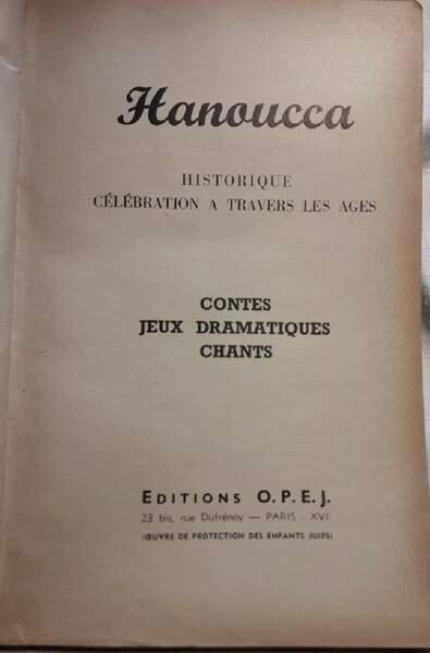 HANOUCCA-HISTORIQUE CELEBRATION A TRAVERS LES AGES-CONTES JEUX DRAMATIQUES CHANTS(1949)