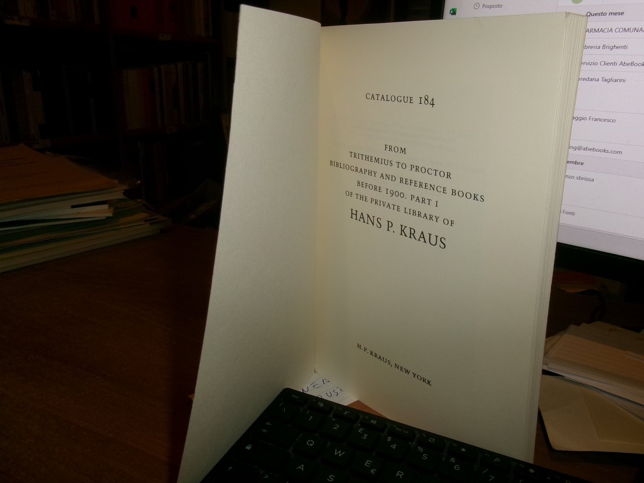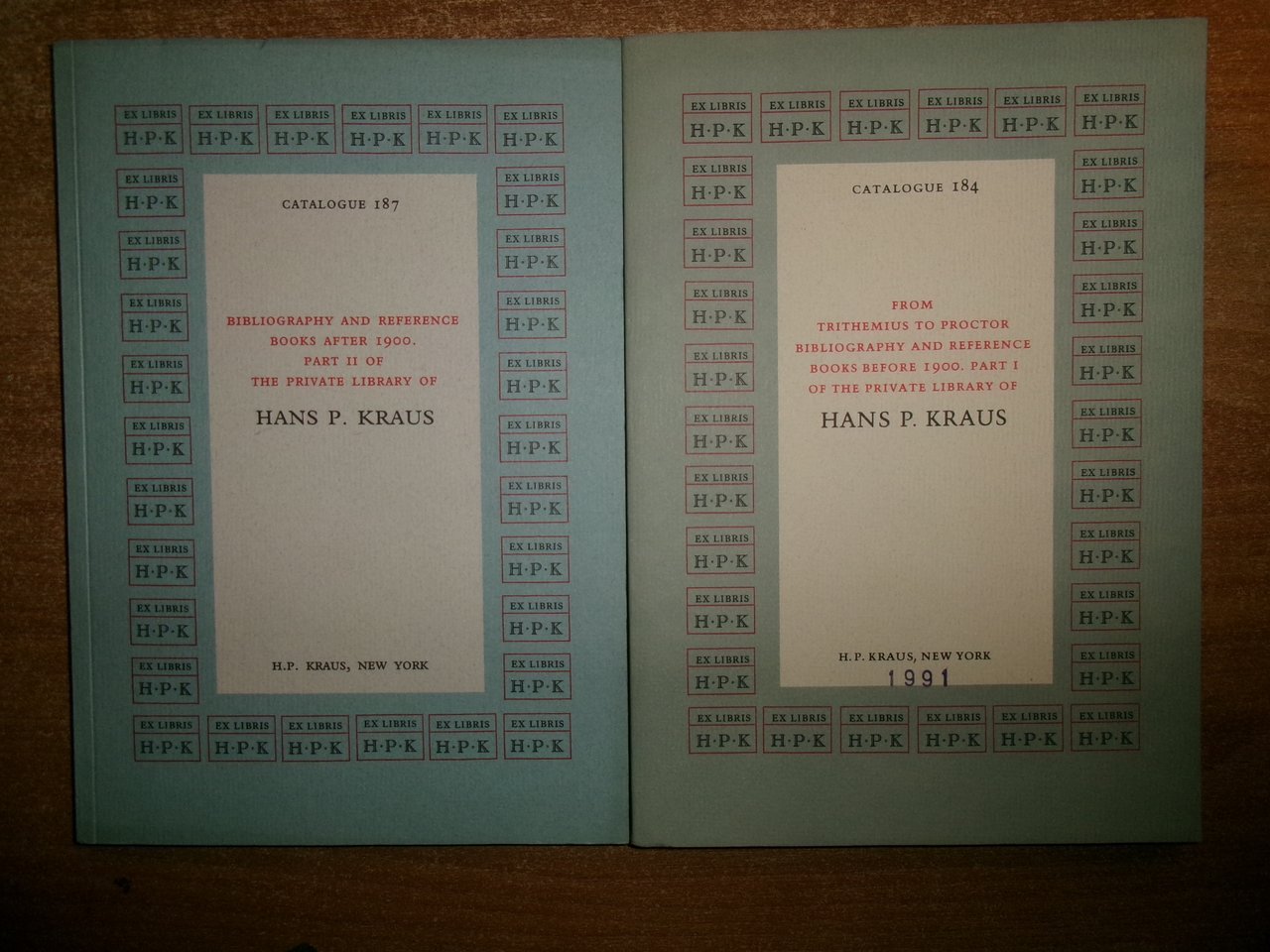 HANS P. KRAUS. New York, H.P. Kraus, 1991. From Trithemius to Proctor Bibliography and reference books before 1900. Part I. Part II. 2 cataloghi in-8°, br. edit. 170 pp. con riproduzioni n.t. 143 pp. I prezzi sono in dollari. Come nuovi. Neg. mob. nero 10 entro busta trasp.