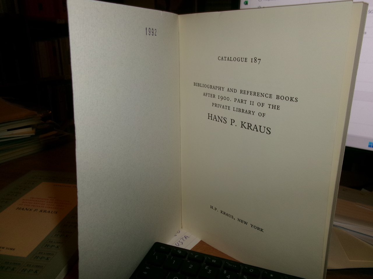 HANS P. KRAUS. From Trithemius to Proctor-Bibliography and reference.. 2 catalogue