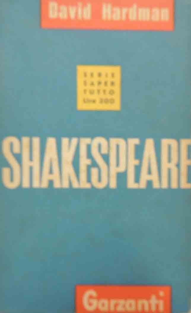 David Hardman, Shakespeare, Garzanti, s.l. (ma stampato a Milano, presso le Officine Grafiche Aldo Garzanti) 1955, pp. 183, cm 19, br. ed. Collana Saper Tutto, nn. 58-59.Titolo originale dell’opera: What about Shakespeare. Traduzione: Maria Gallone. Leggere tracce d’uso, minime fioriture e bruniture, leggera ingiallitura della carta, per il resto buona copia.