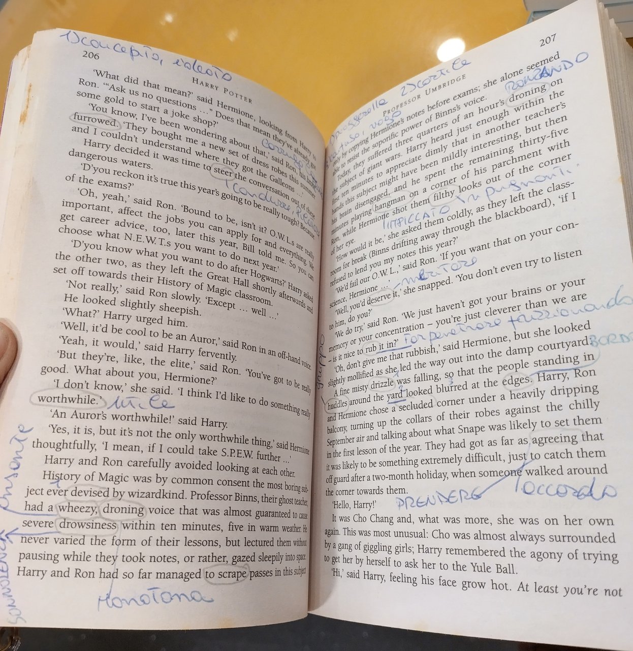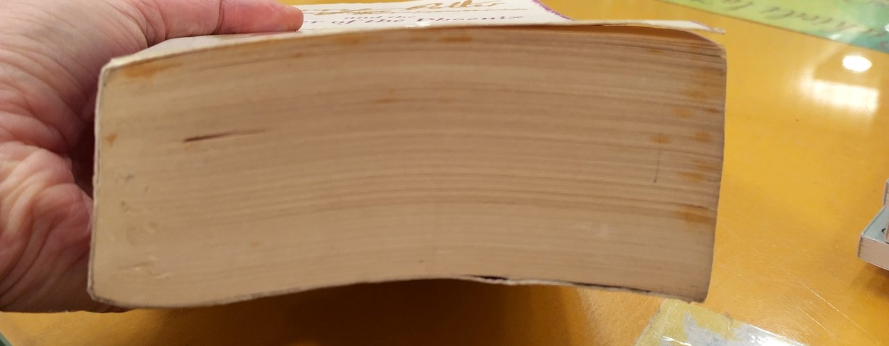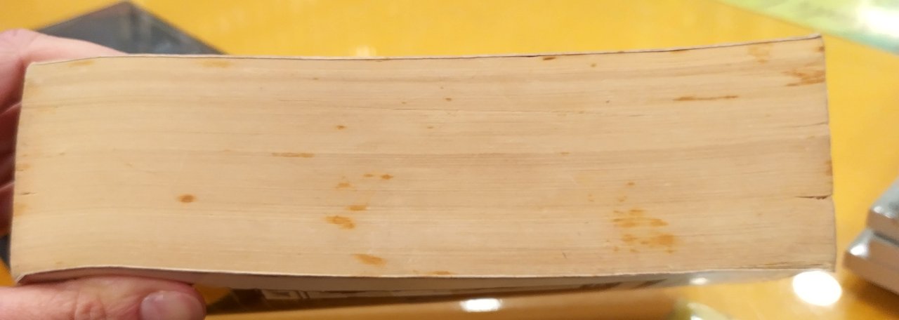 libro usato, macchie di umidità sulla costola, appunti a penna all'interno