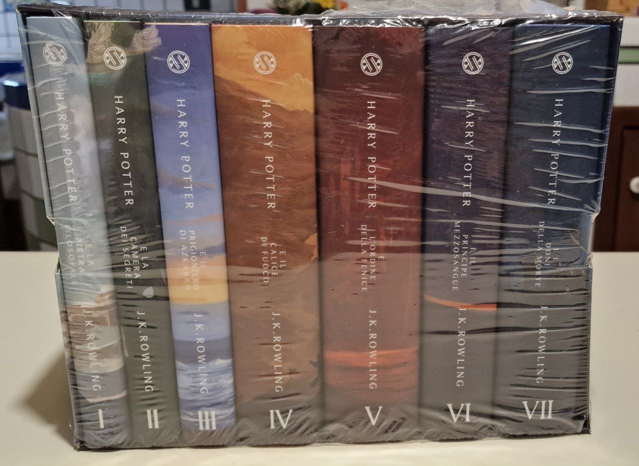harry potter cofanetto de lucchi prima stampa blisterato. cofanetto serie completa harry potter rowling copertine de lucchi prima stampa assoluta acquistato il primo giorno dell'uscita Il cofanetto ? nuovo ancora chiuso nel suo blister originale Piccolissima apertura al blister