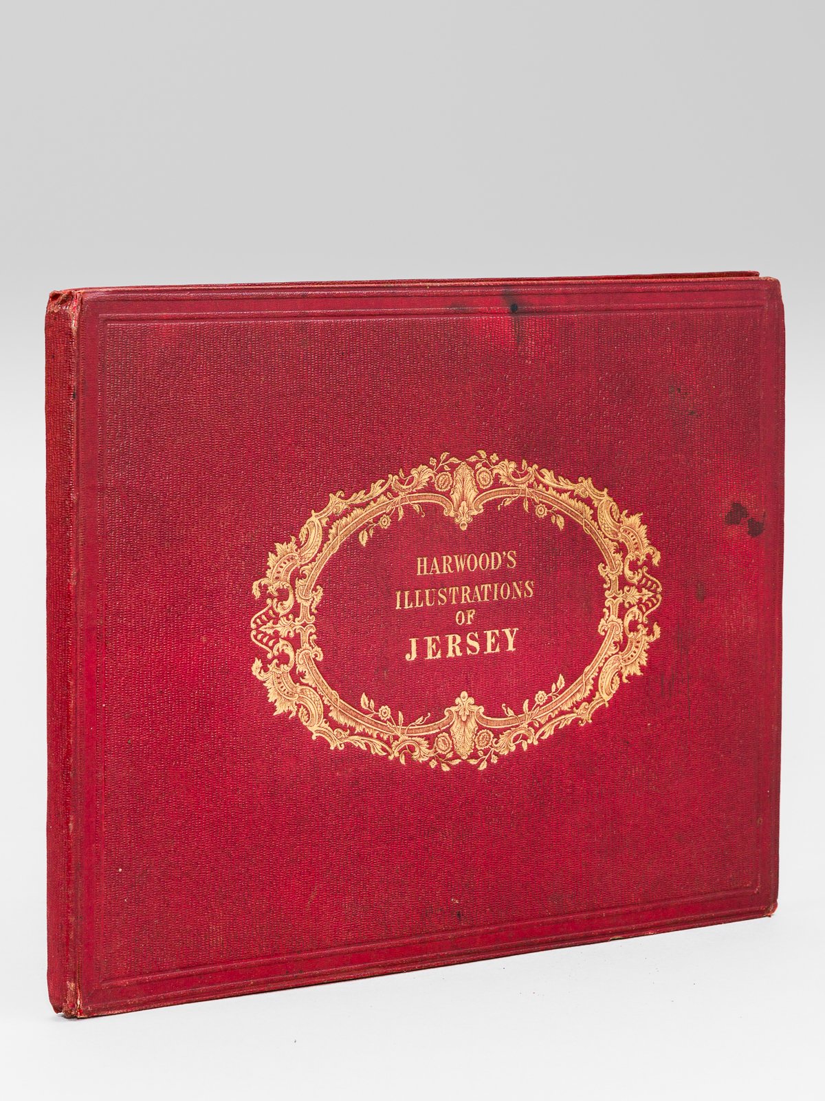 1 vol. in-8 oblong cartonnage éditeur pleine percaline bordeaux, J. & E. Harwood, s.d. [ circa 1855 ], 30 planches gravées sous serpente ("Town of St Héliers from St Saviours", "Victoria Harbour", "St Heliers from the Victoria Promenade", "Victoria College", "St Marks Church", "St Héliers Church", "St Peter's Valley", etc.) Les planches sont datées entre 1839 et 1855. Plates dated between 1839 and 1855. Bon état (ex-libris ms. M. L. de Chesnel).