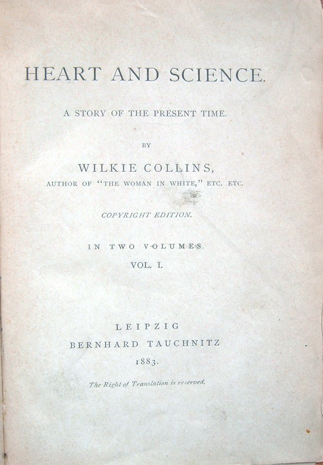 Heart and science. A story of the present time. Copyright edition. In two volumes