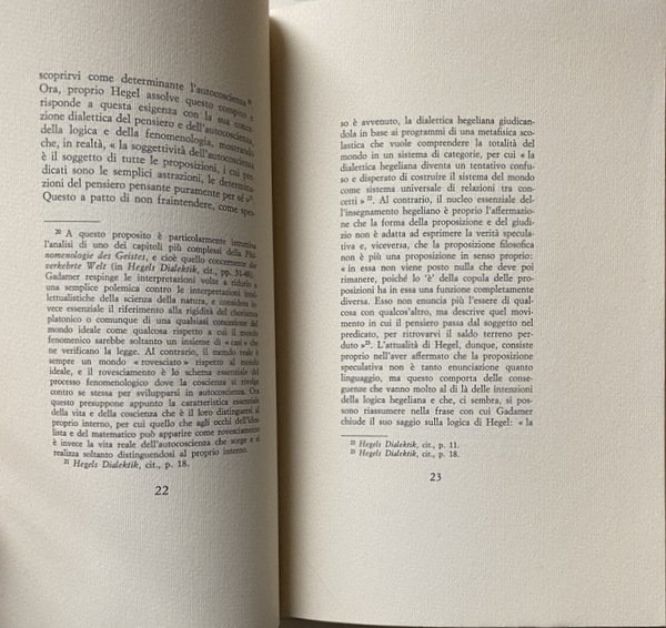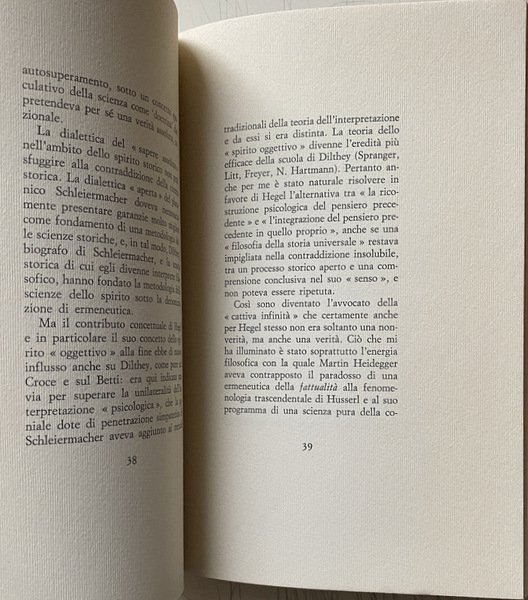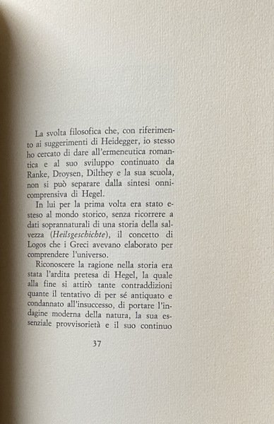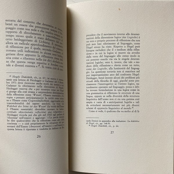 Soggetti: Filosofia, Libri rari, Seminari, Lezioni, Conferenze, Corsi, Ermeneutica, Pensiero ermeneutico, Ontologia, Critica, Interpretazione, Verità, Comprensione, Problematica gadameriana, Gianni Vattimo, Pensiero debole, Martin Heidegger, Dialettica, Platone, Hegel, Collezionismo, Saggistica, Filosofia Greca, Cultura tedesca contemporanea, Anni Settanta, Studi filosofici, Pensiero greco, Estetica, Coscienza storica, Fenomenologia, Storicismo, Metodo, Autopresentazione, Aristotele, Kant, Whitehead, Wittgenstein, Wahrheit und Methode, Die Idee Guten zwischen Plato und Aristoteles, Hermeneutischer Zirkel, Dasein, Linguaggio, Idealismo tedesco, Griechische Philosophie, Essere, Metafisica, Scritti critici, Autocoscienza, Logica hegeliana, Spirito storico, Romanticismo, Heidelberg, Lettere, Husserl, Ancient Greek masters, Hermeneutical Studies, Absolute Spirit, Essere e tempo, Assoluto, Forza, Comprensione, Percezione, Mondo capovolto, Wissenschaft der Logik, Parmenide, Natura, Presocratici, Eraclito, Socrate, Scienza moderna, Schelling, Kierkegaard, Nietzsche, Marx, Kojève, Sartre, Ambivalenza, Pensiero hegeliano, Eredità, Religione, Cristianesimo, Esistenza, Spirito assoluto, Sein Und Zeit, Holderlin, Phanomenologie, Fenomenologia trascendentale, Fattualità, Logos, Storia Salvezza, Greci, Heilsgeschichte, Dilthey, Droysen, Ranke, Novecento, Confronti, Contrapposizioni, Sapere assoluto, Mondo antico, Libri Vintage Fuori catalogo, Philosophy, Rare books, Seminars, Lectures, Conferences, Courses, Hermeneutics, Hermeneutic thinking, Ontology, Criticism, Interpretation, Truth, Understanding, Gadamerian problematic, Weak thought, Dialectic, Collecting, Non-fiction, Greek philosophy, Contemporary German culture, Years Seventy, Philosophical studies, Aesthetics, Historical consciousness, Phenomenology, Historicism, Method, Self-presentation, Language, German idealism, Metaphysics, Critical writings, Self-awareness, Hegelian logic, Historical spirit, Romanticism, Letters, Being and time, Strength, Understanding, Perception, Upside down world, Parmenides, Nature, Presocratics, Heraclitus, Socrates, Modern science, Ambivalence, Hegelian thought, Heritage, Religion, Christianity, Existence, Absolute spirit, Transcendental phenomenology, Factuality, History of Salvation, Greeks, Twentieth century, Comparisons, Contrasts, Absolute Knowledge, Ancient World, Books Out of print