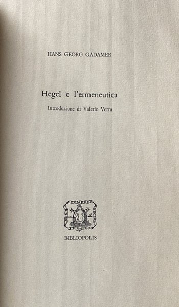 HEGEL E L'ERMENEUTICA. INTRODUZIONE DI VALERIO VERRA