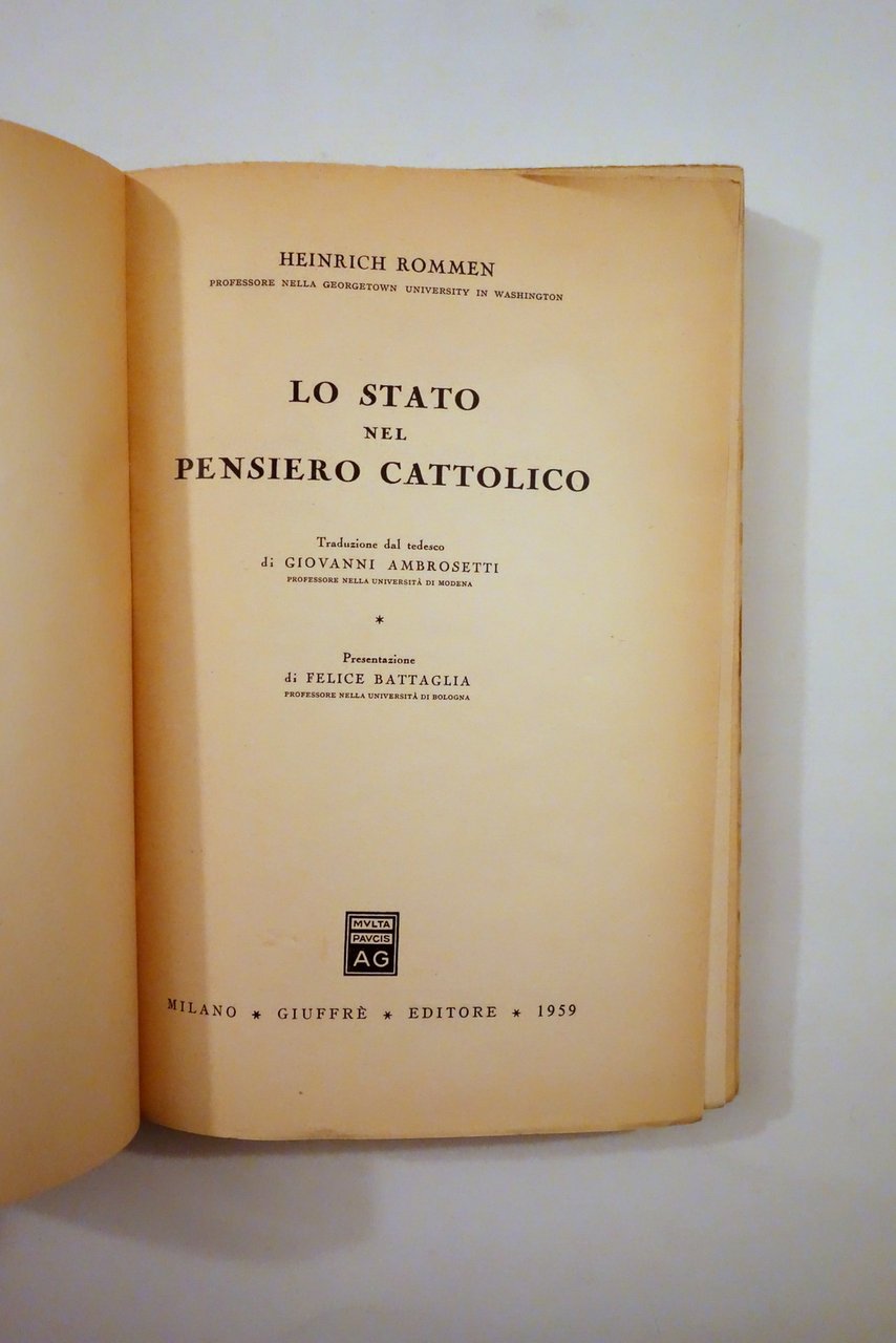 Heinrich Rommen Lo Stato nel Pensiero Cattolico GiuffrË Milano 1959