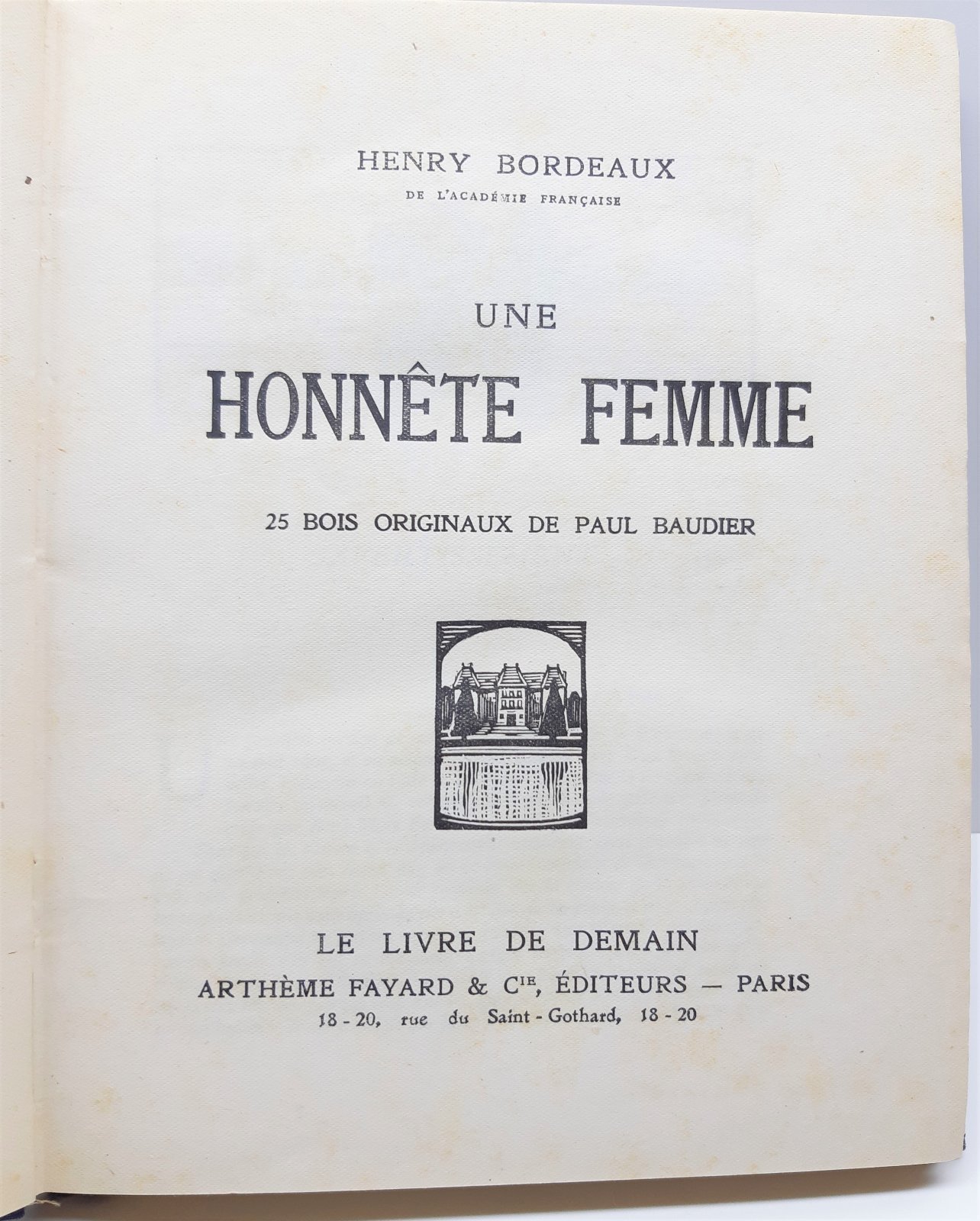 Henry Bordeaux Une honnette femme Fayard 1926 25 Bois Originaux De P.Baudier
