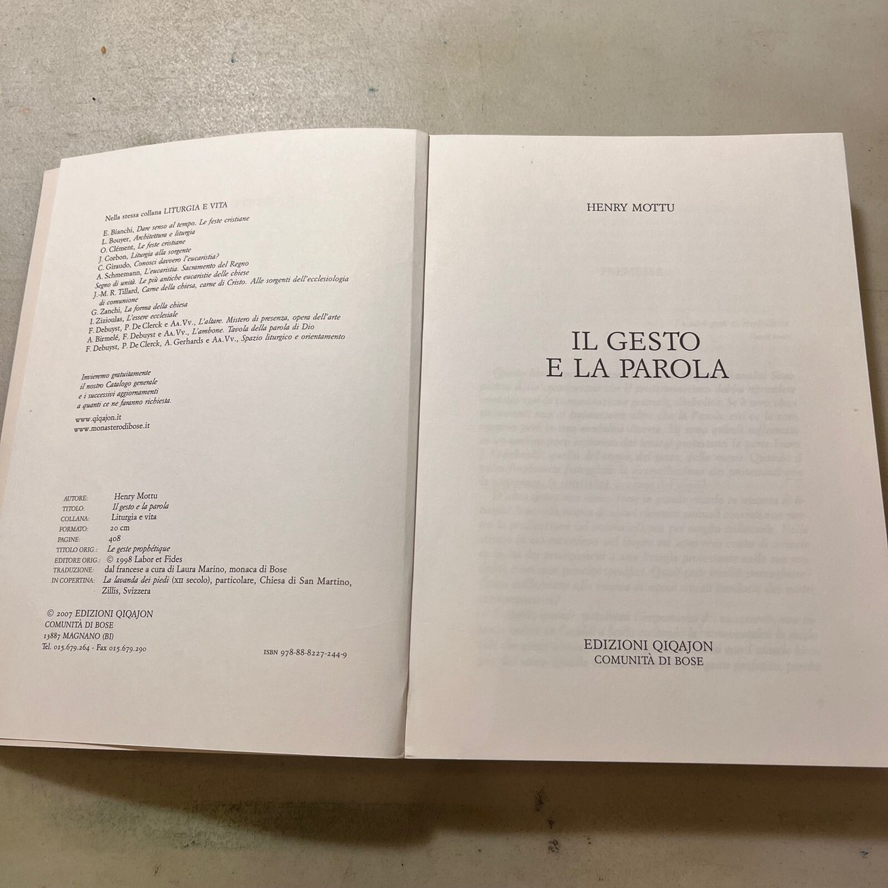 Henry Mottu,IL GESTO E LA PAROLA, Edizioni QIQAJON 2007