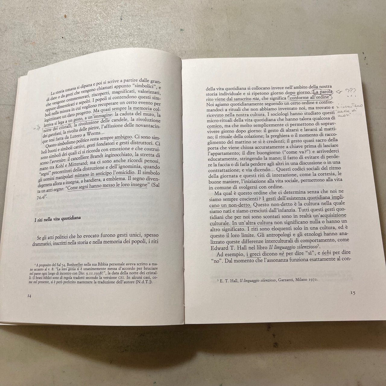 Henry MottuIL GESTO E LA PAROLAEdizioni QIQAJON comunità di Bose, Biella, 2007Collana Liturgia e vitaTraduzione di Laura MarinoBrossura, 20,5x14,5 cm, pp. 408Peso: g. 557Cod: 8001CONDIZIONI DEL LIBRO:La copertina è leggermente macchiata, all’interno sono presenti sottolineature a matita. Nel complesso, il libro è in ottime condizioni.