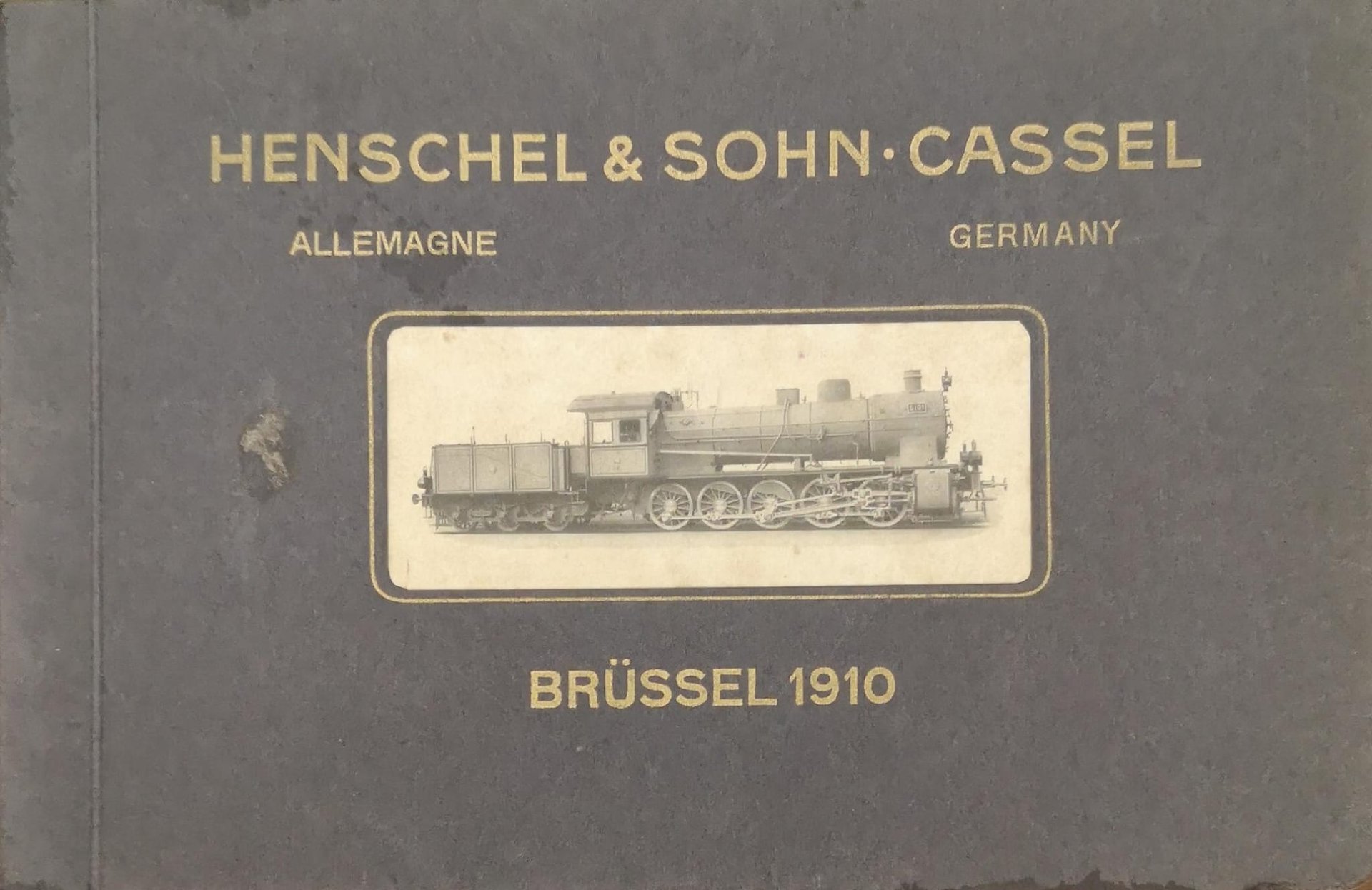 Album in-16 p., brossura editoriale con illustrazioni in bianco e nero applicata al piatto anteriore, pp. 143, con illustrazioni in bianco e nero nel testo, relative ai vari tipi di locomotive prodotte dalla ditta Henschel & Sohn, di Cassel, largest locomotive works of Europe. Total output up to date 10.000 locomotives. Annual capacity 7-800 locomotives. Agents in all countries. Raro catalogo pubblicato in lingua tedesca, francese e inglese che contiene, oltre alla storia della ditta, una descrizione of the locomotives exhibited. Risguardi leggermente fioriti, peraltro esemplare ben conservato.