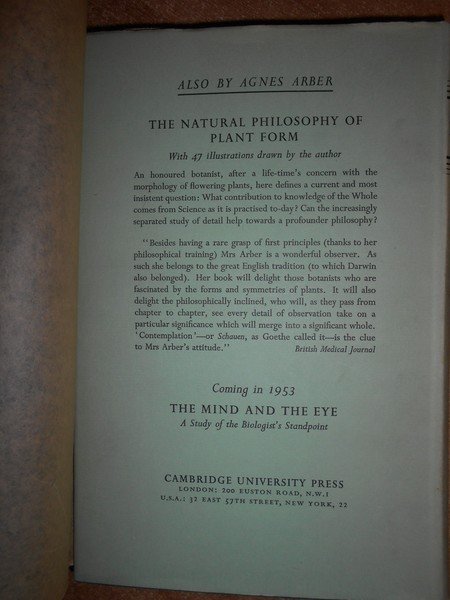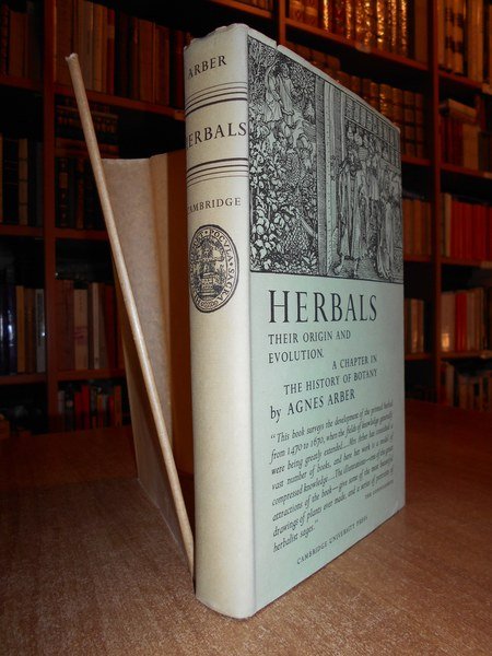 Agnes, Arber. Cambridge, at The University Press, 1953. HERBALS origin and evolution a chapter in the History of Botany 1470 - 1670. In-8°, pelle verde con titolo in oro al dorso, sovracopertina edit. con velina trasparente di protezione. xxiv, 326 pp. con illustrazioni e ritratti nel testo. Ottimo esemplare. Uff. C. IV - 4