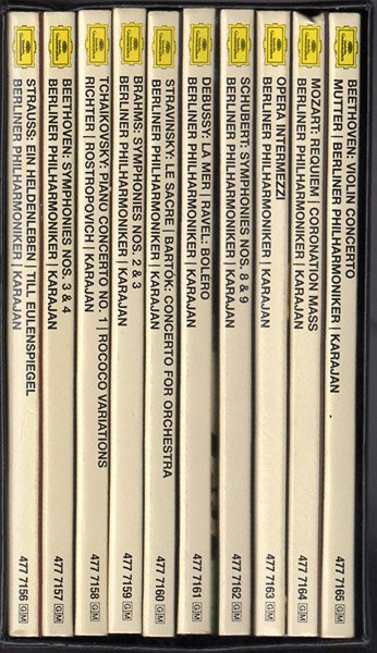 10 cd in case box cofanetto. new unopened. Cofanetto, Compilation, Slipcase 10 x CD, Album, Reissue, Remastered Elenco tracce Nascondi riconoscimenti Ein Heldenleben, Op. 40 Composed By ñ Richard Strauss (45:39) 1-1 Der Held 4:14 1-2 Des Helden Widersacher 3:27 1-3 Des Helden Gefarhtin 13:00 1-4 Des Helden Walstatt 7:15 1-5 Des Helden Friedenswerke 6:04 1-6 Des Helden Weltflucht Und Vollendung 11:39 1-7 Till Eulenspiegels Lustige Streiche, Op. 28 15:31 Symphony No. 3 In E Flat Major "Eroica" Op. 55 Composed By ñ Ludwig van Beethoven (50:00) 2-1 Allegro Con Brio 14:50 2-2 Marcia Funebre. Adagio Assai 17:06 2-3 Scherzo. Allegro Vivace 5:46 2-4 Finale. Allegro Molto 12:18 Symphony No. 4 In B Flat Major Op. 60 Composed By ñ Ludwig van Beethoven (31:09) 2-5 Adagio - Allegro Vivace 9:55 2-6 Adagio 9:58 2-7 Allegro Vivace 5:45 2-8 Allegro Ma Non Troppo 5:31 Piano Concerto No.1 In B Flat Minor, Op.23 Composed By ñ Peter Ilyich Tchaikovsky* (36:11) 3-1 Allegro Non Troppo E Molto Maestoso - Allegro Con Spirito 22:09 3-2 Andantino Semplice - Prestissimo - Tempo I 6:55 3-3 Allegro Con Fuoco 7:07 Variations On A Rococo Theme, Op.33 Composed By ñ Peter Ilyich Tchaikovsky* (18:54) 3-4 Moderato Assai - Quasi Andante 0:54 3-5 Tema: Moderato Semplice 1:43 3-6 Variazione I: Tempo Del Tema 0:52 3-7 Variazione II: Tempo Del Tema 1:13 3-8 Variazione III: Andante Sostenuto 3:59 3-9 Variazione IV: Andante Grazioso 1:54 3-10 Variazione V: Allegro Moderato 3:28 3-11 Variazione VI: Andante 2:52 3-12 Variazione VII E Coda: Allegro Vivo 1:59 Symphony No. 2 In D Major, Op. 73 Composed By ñ Johannes Brahms (41:04) 4-1 1. Allegro Non Troppo 15:43 4-2 2. Adagio Non Troppo - L'istesso Tempo, Ma Grazioso 10:54 4-3 3. Allegretto Grazioso (Quasi Andantino) 5:23 4-4 4. Allegro Con Spirito 9:04 Symphony No. 3 In F Major, Op. 90 Composed By ñ Johannes Brahms (32:18) 4-5 1. Allegro Con Brio 14:50 4-6 2. Andante 7:43 4-7 3. Poco Allegretto 5:56 4-8 4. Allegro 8:50 Le Sacre Du Printemps Composed By ñ Igor Stravinsky (34:43) 5-1 I. L'Adoration de la Terre. Introduction 3:18 5-2 Les Augures Printaniers (Danses Des Adolescentes) 3:24 5-3 Jeu Du Rapt 1:10 5-4 Rondes PrintaniËres 3:37 5-5 Jeux Des CitÈs Rivales 1:50 5-6 CortËge Du Sage 0:42 5-7 Adoration De La Terre (Le Sage) 0:25 5-8 Danse De La Terre 1:11 5-9 II. Le Sacrifice. Introduction 4:37 5-10 Cercles MystÈrieux Des Adolescentes 3:27 5-11 Glorification De L'…lue 1:32 5-12 Evocation Des AncÍtres 0:46 5-13 Action Rituelle Des AncÍtres 3:57 5-14 Danse Sacrale (L'…lue) 4:46 Concerto For Orchestra Sz 116 Composed By ñ BÈla BartÛk (38:56) 5-15 (Introduzione). Andante Non Troppo - Allegro Vivace 10:09 5-16 (Giuoco Delle Coppie). Allegretto Scherzando 6:50 5-17 (Elegia). Andante, Non Troppo 8:24 5-18 (Intermezzo Interrotto). Allegretto 4:18 5-19 (Finale). Pesante ñ Presto 9:25 La Mer Composed By ñ Claude Debussy (22:41) 6-1 1. De L'Aube ¿ Midi Sur La Mer. Tres Lent 8:37 6-2 2. Jeux De Vagues. Allegro 6:13 6-3 3. Dialogue Du Vent Et De La Mer. AnimÈ Et Tumultueux 7:51 6-4 PrÈlude ¿ L'AprËs-Midi D'Un Faune Composed By ñ Claude Debussy Flute ñ Karlheinz Zˆller 9:51 6-5 Daphnis Et ChloÈ ?ñ Suite No. 2 Composed By ñ Maurice Ravel 15:16 6-6 BolÈro Composed By ñ Maurice Ravel 16:09 Symphony No. 8 In B Minor "Unfinished" D 759 Composed By ñ Franz Schubert (24:10) 7-1 1. Allegro Moderato 11:33 7-2 2. Andante Con Moto 12:37 Symphony No. In C Major "The Great" D 944 Composed By ñ Franz Schubert (46:43) 7-3 1. Andante - Allegro Ma Non Troppo 12:44 7-4 2. Andante Con Moto 12:20 7-5 3. Scherzo. Allegro Vivace 10:05 7-6 4. Finale. Allegro Vivace 11:34 8-1 La Traviata - Prelude To Act 3 Composed By ñ Giuseppe Verdi 4:29 8-2 Cavalleria Rusticana - Intermezzo Sinfonico Composed By ñ Pietro Mascagni Organ ñ Wolfgang Meyer (2) 3:32 8-3 Suor Angelica - Intermezzo Composed By ñ Ruggiero Leoncavallo 4:37 8-4 Pagliacci - Intermezzo Composed By ñ Modest Mussorgsky 3:43 8-5 Khovanshchina - Intermezzo, Act 4 Composed By ñ Modest Mussorgsky 4:09 8-6 Manon Lescaut - Intermezzo, Act 3 Composed By ñ Giacomo Puccini 5:38 8-7 Notre Dame - Intermezzo Composed By ñ Franz Schmidt 4:44 8-8 ThaÔs - Meditation, Act 2 Composed By ñ Jules Massenet Violin ñ Michel SchwalbÈ 6:04 8-9 Fedora - Intermezzo, Act 2 Composed By ñ Franz Schmidt 2:03 8-10 Adriana Lecouvreur - Intermezzo, Act 2 Composed By ñ Francesco CilËa* 2:29 8-11 Der Schmuck Der Madonna - Intermezzo, Act 3 Composed By ñ Ermanno Wolf-Ferrari 3:41 8-12 L'Amico Fritz - Intermezzo, Act 3 Composed By ñ Pietro Mascagni 5:02 Requiem, K. 626 Composed By ñ Wolfgang Amadeus Mozart (52:17) 9-1 I. Introitus: Requiem 5:43 9-2 II. Kyrie 2:48 9-3 II. Sequence: No. 1 Dies Irae 1:52 9-4 No. 2. Tuba Mirum 4:13 9-5 No. 3. Rex Tremendae 2:27 9-6 No. 4. Recordare 5:18 9-7 No. 5. Confutatis 2:24 9-8 No. 6. Lacrimosa 3:22 9-9 IV. Offertorium: No. 1 Domine Jesu 3:50 9-10 No. 2 Hostias 4:28 9-11 No. 3 Sanctus 1:44 9-12 V. Benedictus 5:13 9-13 VI. Agnus Dei 3:35 9-14 VII. Comunio Lux Aeterna 6:24 Mass K. 317 ªCoronation´ Composed By ñ Wolfgang Amadeus Mozart (25:50) 9-15 Kyrie 3:15 9-16 Gloria 3:58 9-17 Credo 6:39 9-18 Sanctus 1:57 9-19 Benedictus 3:16 9-20 Agnus Dei: Agnus Dei 3:51 9-21 Dona Nobis Pacem 2:48 Concerto For Violin And Orchestra In D Major Op 61 Composed By ñ Ludwig van Beethoven (48:20) 10-1 1. Allegro Ma Non Troppo 26:34 10-2 2. Larghetto 11:24 10-3 3. Rondo. Allegro 10:22 Societ‡, ecc. Copyright fonografico ? ñ Deutsche Grammophon GmbH Copyright © ñ Deutsche Grammophon GmbH Copyright © ñ Siegfried Lauterwasser Crediti Art Direction ñ Philipp Starke Booklet Editor ñ Eva Zˆllner Compiled By, Research ñ Alan Newcombe, David Butchart Conductor ñ Herbert von Karajan Liner Notes [Deutsch] ñ Christian Frenssen Liner Notes [Traduction] ñ Hugues Mousseau Liner Notes [Translation] ñ Stewart Spencer Photography By [All Except pp. 10-11] ñ Siegfried Lauterwasser Photography By [pp.10-11] ñ Ilse Buhs Project Ma