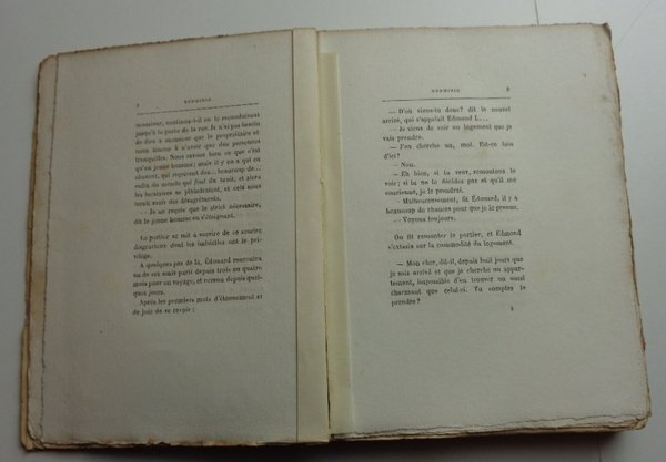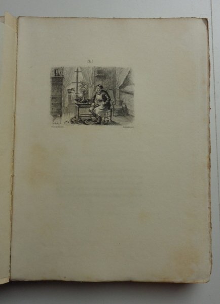 Un volume (18,5 cm) di (4)-111-(2) pagine su carta forte, in barbe, con frontespizio e 14 graziose vignette, su piena pagina, di Roubadi incise da Deville. In lingua francese. Brossura editoriale azzurra con usure al dorso. Prima edizione separata. Interno, carta e incisioni in ottime condizioni (più modesto l'aspetto esterno, ma queste edizioni erano destinate ad essere rilegate artigianalmente e quindi la brossura era sostanzialmente d'attesa).