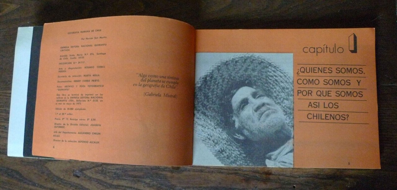 Hernan San Martin,GEOGRAFIA HUMANA DE CHILE.Empresa Editora Nacional Quimantu,Santiago de Chile 1972,brossura, rilegatura con punto metallico,19x14 cm., pp.96,illustrazioni in nero e a colori,coleción NOSOTROS LOS CHILENOS / 17,serie: HOY CONTAMOS,testo in spagnolo,peso: g.150