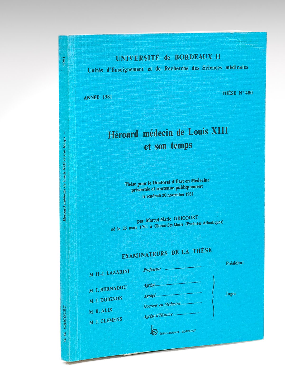 Héroard, médecin de Louis XIII et son temps. Thèse pour le doctorat d'état en médecine, présentée et soutenue publiquement le vendredi 20 novembre 1981