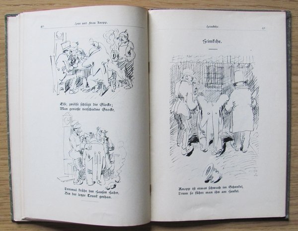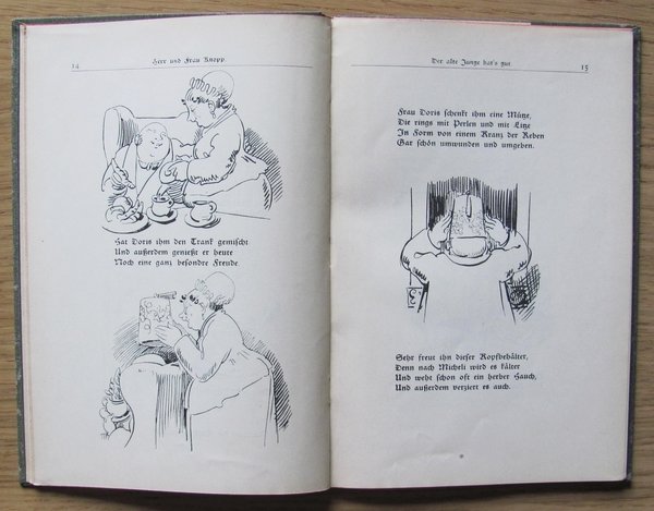 Simpaticissime illustrazioni in b/n a tutte le pagine di W. Busch. Verlag Baffermann - Munchen, 1906. Tela editoriale con minime scoloriture ai margini. Ottimo stato. , Buono (Good)