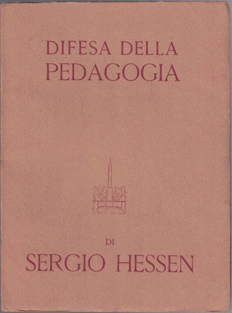 Sergio (Sergej) Hessen, Difesa della pedagogia, Casa Editrice Avio, Roma 1950, prima ed., pp. 37, cm 20, br. ed. Collana I problemi della pedagogia, vol. 1. Titolo originale: Pedagog. Traduzione di Hanna Mirecka e Luigi Volpicelli. Qualche sporadica sottolineatura a lapis, minima brunitura della carta, per il resto ottimo.