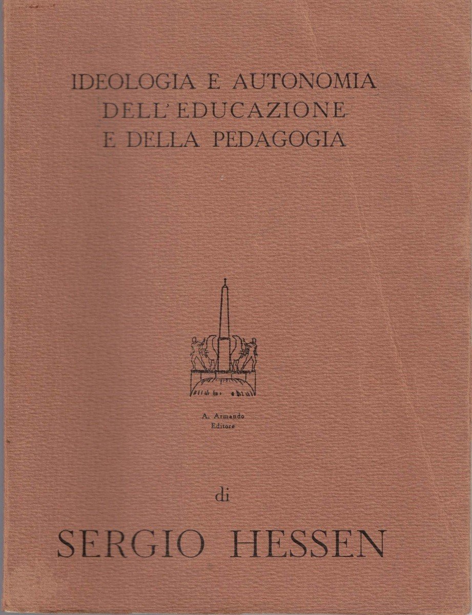 Sergio Hessen, Ideologia e autonomia dell’educazione e della pedagogia, Armando Armando Editore, Roma 1962, prima ed., pp. 291, cm 19, br. ed. Collana I problemi della pedagogia, vol. 69. Titolo originale: Sprezecznosciach i jednosci wychowowania. Traduzione di C. I. Angle e A. Musu. Tracce d’uso, vecchio alone di nastro adesivo alla cerniera dell’occhiello, alcune carte con sottolineature e qualche annotazione a lapis, minime fioriture, lieve brunitura della carta, ma nel complesso ancora più che buona copia, di piena fruibilità e con brossura solida.