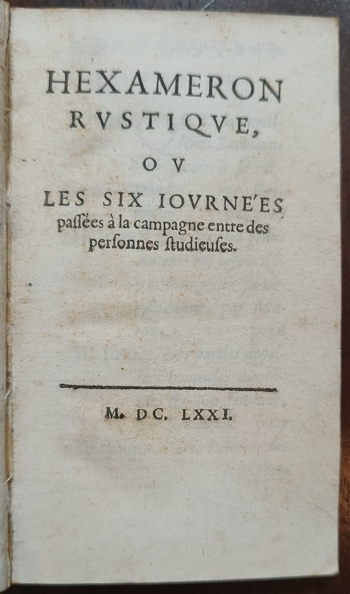 François La Mothe Le Vayer, HEXAMERON RUSTIQUE OU LES SIX IOURNEES passeess à la campagne entre des personnes studieuses, 1671