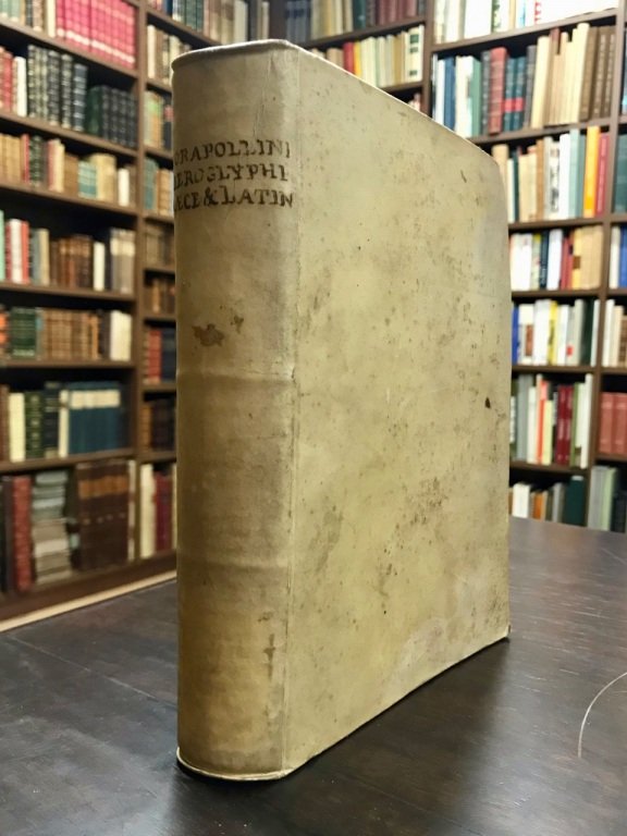 In-4 (cm. 21,5), legatura coeva in p. pergamena rigida con titolo ms. al dorso, pp. [16] 404 [8] con 1 tavola in rame di geroglifici incisa f.t., fioriture sparse e bruniture. Mancanza del fascicolo 2Q (pp. 305-312). Trattato sui segni in chiave simbolico-ermetica dello scrittore egiziano. Esemplare non completo ma genuino.