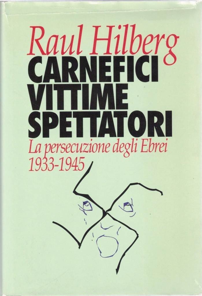 Raul Hilberg, Carnefici vittime spettatori. La persecuzione degli Ebrei. 1933-1945, CDE spa, Milano 1994, pp. 311, cart. ed. con titoli al dorso, sovraccoperta e carte di guardia ill. b.n. Edizione CDE spa su licenza della Arnoldo Mondadori Editore. Titolo originale: Perpetrators, victims, bystanders. Traduzione di Davide Panzieri. Due strappetti al margine della sovraccoperta, lievissima ingiallitura della carta, per il resto ben conservato.