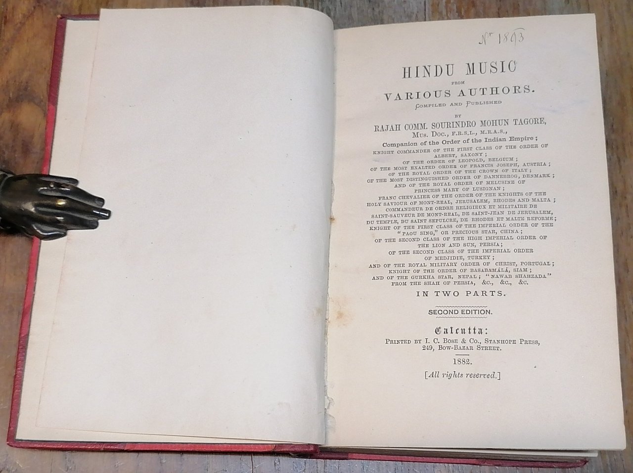 Hindu Music from various authors. Compiled and published by Rajah Comm. Sourindro Mohun Tagore. In two parts.
