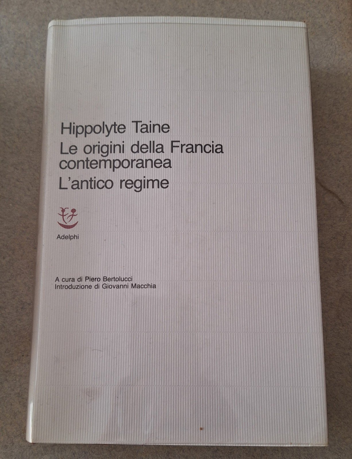 HIPPOLYTE TAINE LE ORIGINI DELLA FRANCIA CONTEMPORANEA L'ANTICO REGIME ADELPHI In 8°,legatura editoriale, sovracopertina illustrata e in acetato trasparente.In ottime condizioni.TUTTI I NOSTRI LIBRI SONO VISIBILI PREVIO CONTATTO MAIL, TELEFONO O WHATSAPP NELLA NUOVA SEDE DI MILANO: LIBRERIA COSMOPOLIS, VIA JOMMELLI 22, MILANO.3313109672