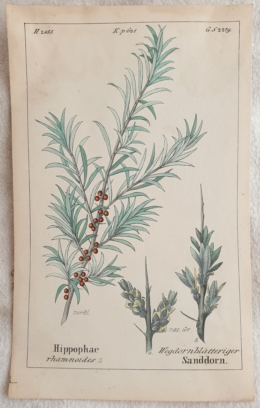 Bella cromolitografia del 1843 tratta dalla celebre opera di botanica "Flora der Schweiz" di Heinrich Romer sulla flora della Svizzera. In buone condizioni, qualche fioritura. Segni di colla al verso. TECNICA: Cromolitografia DIMENSIONI FOGLIO: cm 17,5x11 DIMENSIONI INCISIONE: cm 15,5x9,5 EPOCA: 1843 CONDIZIONI: Buone condizioni, qualche fioritura. Resto di colla al verso.Beautiful chromolythography of 1843 representing sea buckthorn taken form the famous work of botany "Flora der Schweiz" by Heinrich Romer about flowers of Switzerland. In good conditions, some foxings. Glue signs in the verso of page. TECHNIQUE: Lytography PAGE SIZE: cm 17,5x11 PRINT'S SIZE: cm 15,5x9,5 PERIOD: 1843 CONDITION: good conditions with some foxings. Little tears in the lower edge. Glue signs in the verso of page.
