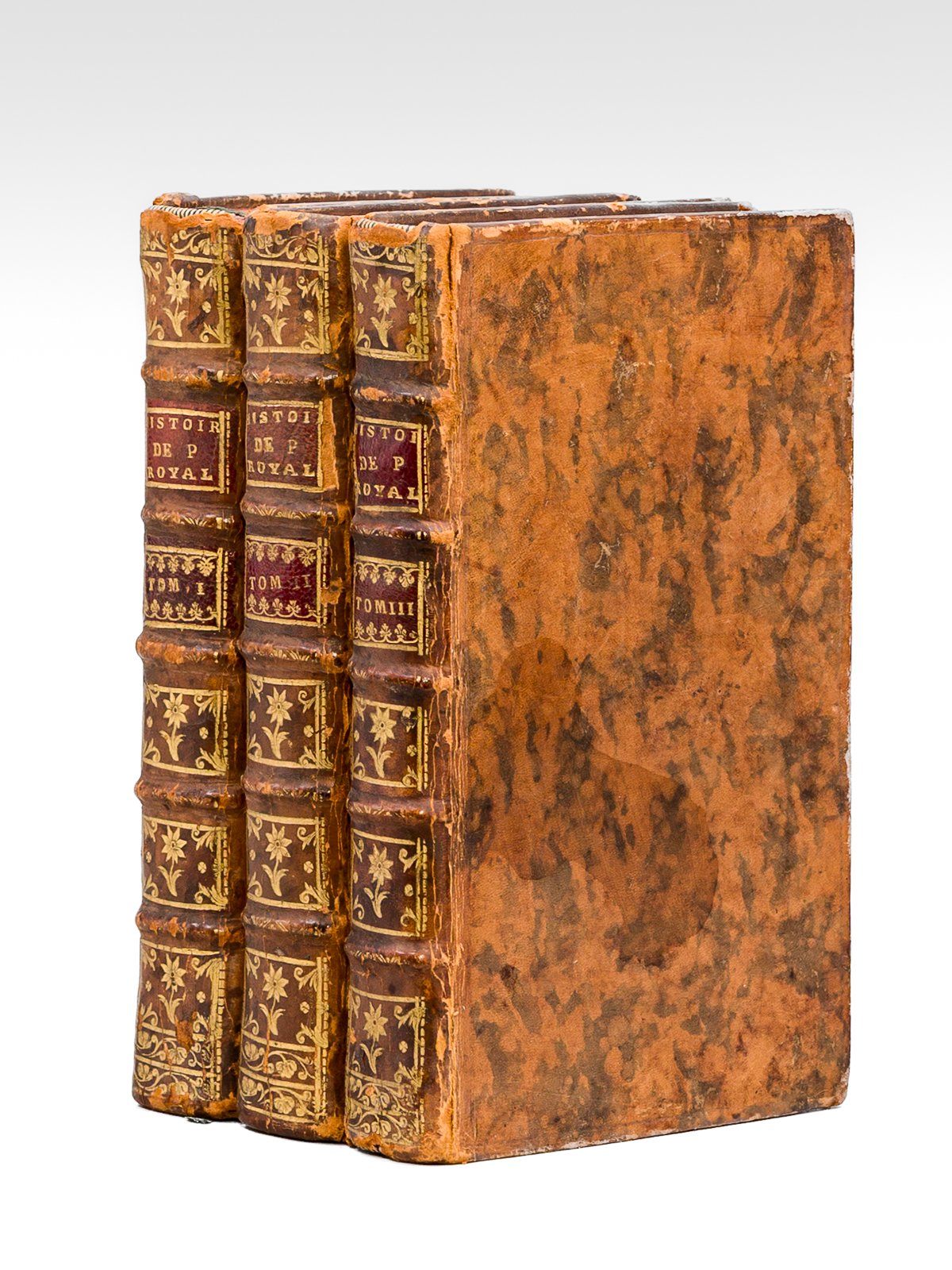 3 vol. in-12 reliure de l'époque plein veau marbré, Edition Royale, 1750, 1 f., VI pp., 1 f. blanc, 397 pp. ; 1 f., VIII-443 pp. ; 1 f., IV-404 pp. L'ouvrage de l'abbé Pinault se concentre sur la période 1706-1709 et la fin de l'Abbaye de Port-Royal des Champs. Les 2 premiers volumes sont ornées d'une belle vignette gravée en page de titre. Bon état (petits mq. en coiffes, une tache d'encre en plats, bon exemplaire par ailleurs). Caillet, 8687 ; Barbier, II, 631