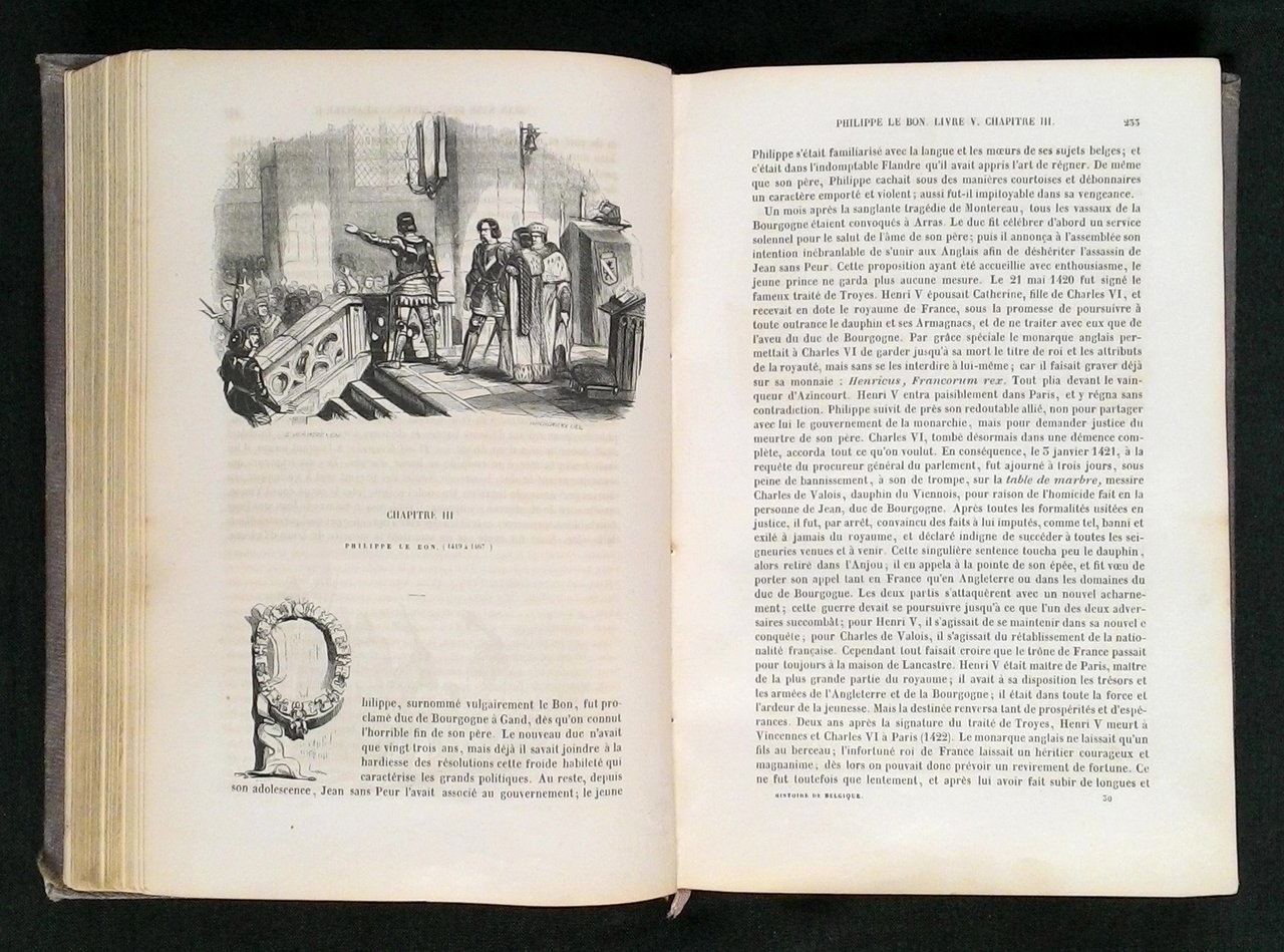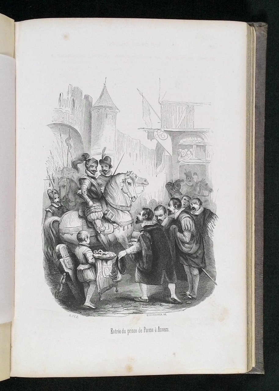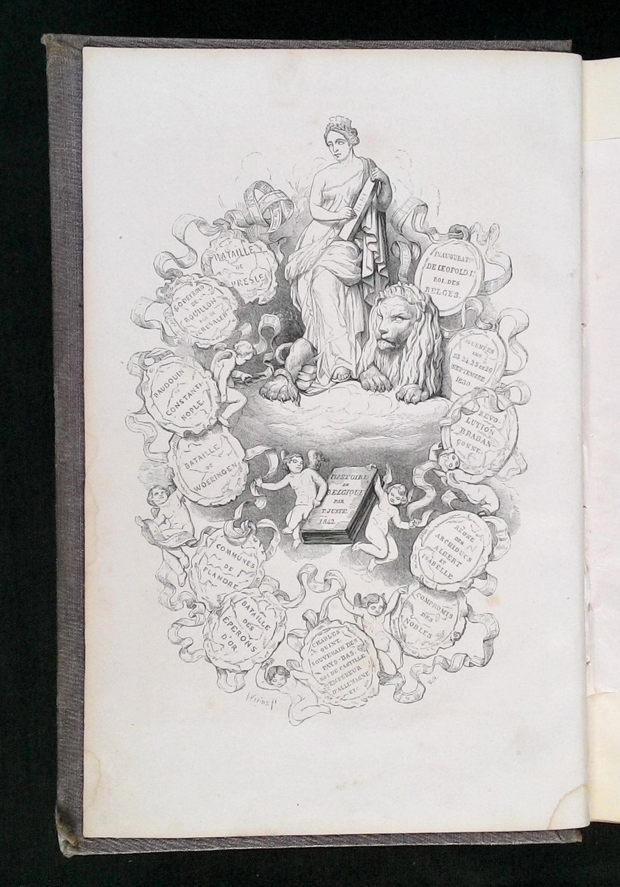 8vo (242x160 mm); leg. in tela con dorso liscio ed impressioni floreali ai piatti, falsi nervi, riquadrature e titolo in oro al dorso, guardie in carta marmorizzata, tagli colorati a spruzzo; pp. IV, 5-625; 23 incisioni f.t. in b.n. protette da veline, marca tipografica al frontespizio e numerose ill. in b.n. nel testo. Prima edizione di quest'opera storica, riccamente illustrata, sul Belgio. L’anno di pubblicazione non è indicato, ma dovrebbe essere circa il 1840. Theodore Juste (1818-1888) è stato uno storico e scrittore belga. Egli divenne curatore del Museo Reale di antiquariato, armature e artiglieria nel 1859. E' stato membro dell'Accademia del Belgio. Rif.: IT\ICCU\TO0\1529897. Cond.: Presenza di qualche macchia d'umido e d'inchiostro; opera in buone condizioni generali.