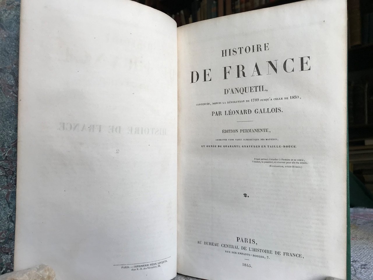 HISTOIRE DE FRANCE continue, depuis la Revolution de 1789 jusqua celle de 1830, par Leonard Gallois. Edition Permanente orne de quarante Gravures en taille douce. Tomo I e II.