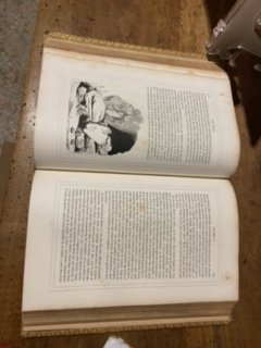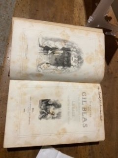 In-8 gr. (mm. 255x155), mz. pelle coeva, dorso a cordoni con fregi e tit. oro, pp. 829, testo in doppio filetto, ornato da fregi, grandi iniziali a vignetta e finalini, con un ritratto di “Gil Blas” f.t.; ben illustrato nel t. dalle numerosiss. composizioni di Gigoux, inc. su legno. Cfr. Carteret,III, p. 386 per la I ediz. del 1835 “considérée capitale: elle marque la rénovation de la gravure sur bois à l'époque romantique" - Benezit,VI, p. 101 cita l’illustr. di quest’opera. Solo qualche lieve fiorit. ma complessivam. ben conservato.