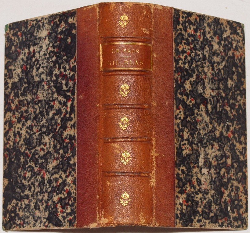 In 16. Dim. 18,5x12,5 cm. Pp. XV+697. Bella edizione del 1867 del celebre romanzo picaresco scritto da Alain Rene Lesage (1668-1747). L'opera, pubblicata tra il 1715 e il 1735 è considerata il capolavoro del genere picaresco. Antica firma alla prima pagina di sguardia e al frontespizio.ì Bella legatura in mezza pelle con titolo in oro al dorso. In ottime condizioni. Copertina in mezza pelle a cinque nervi con titolo in oro al dorso in ottime condizioni generali con lievi usure ai margini e dorso. Legatura in ottime condizioni. All'interno le pagine si presentano in ottime condizioni con rare fioriture. Beautiful edition of 1867 of the famous picaresque novel written by Alain Rene Lesage (1668-1747). The work, published between 1715 and 1735 is cosndiered a masterpiece of picaresque kind. Ancient signature in the first endpaper and in the title page. Beauituf half leather cover with golden title in the spine. In very good conditions. Half leather cover with five nerfs and golden title in the spine in very good general conditions slightly worn in the edges and spine. Binding in very good conditions. Inside pages are in very good conditions with occasional foxings.