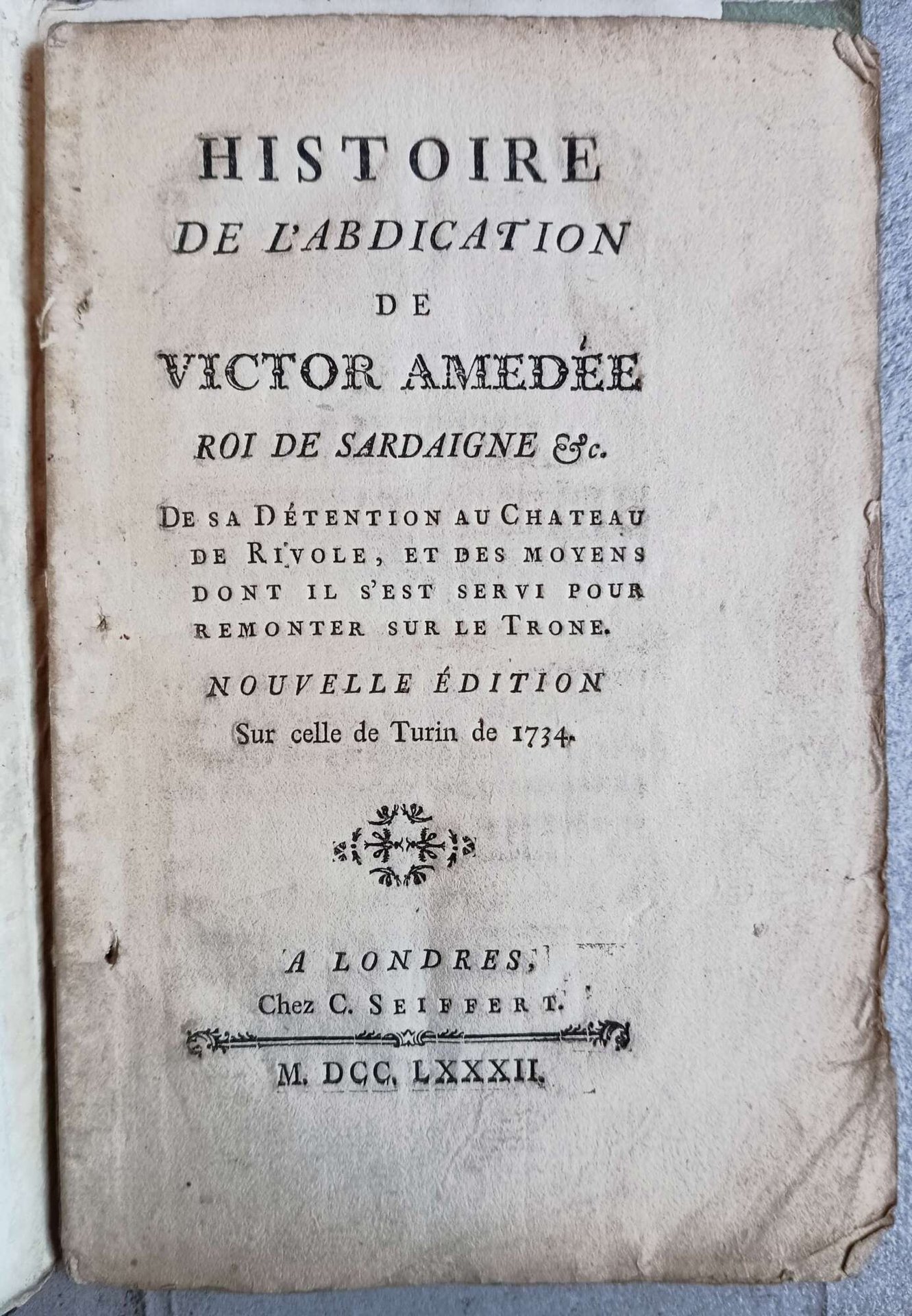 Histoire de l'abdication de Victor-Amedée roi de Sardaigne  & C. , de sa detention au chateau de Rivoli. Et des moyens qu'il s'est servi pour remonter sur le trone